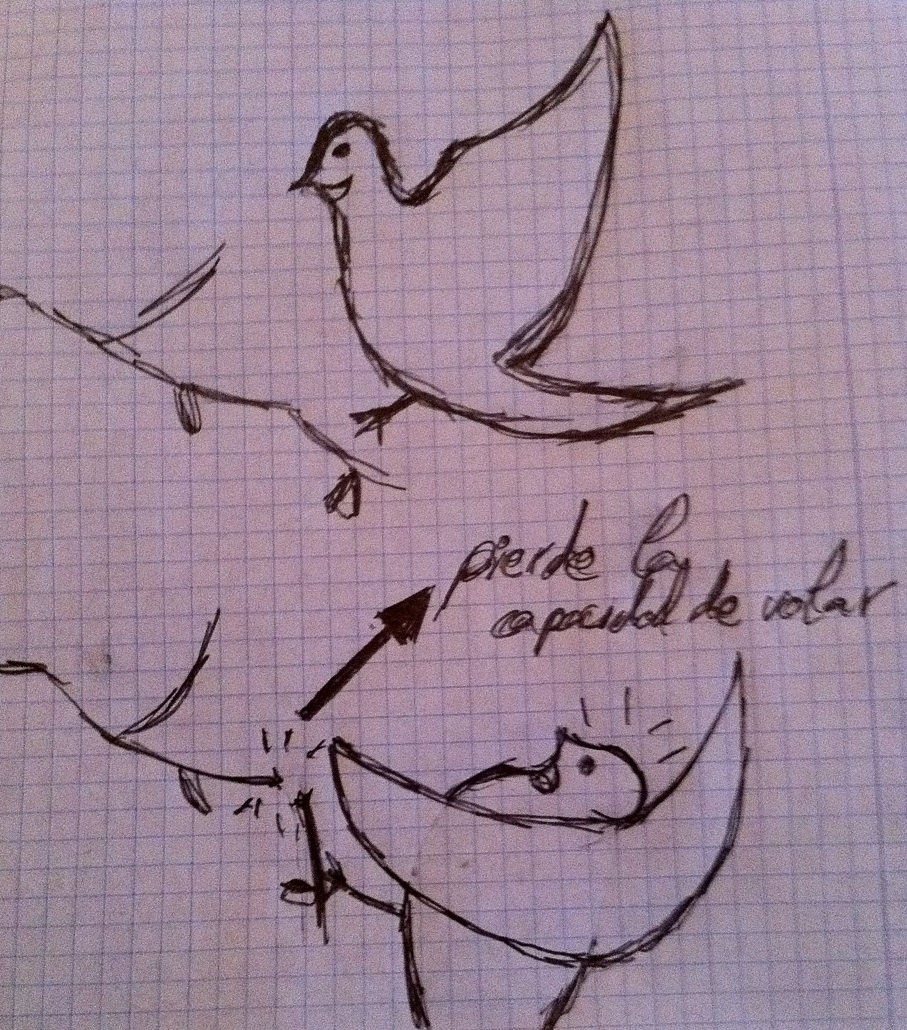 Hay algo que se rompe en la conciencia de esa paloma con ese pequeño crac.